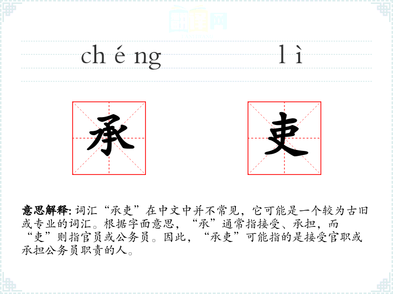 - 词源:“承”和“吏”都是古代汉语词汇,源自古代官制体系。