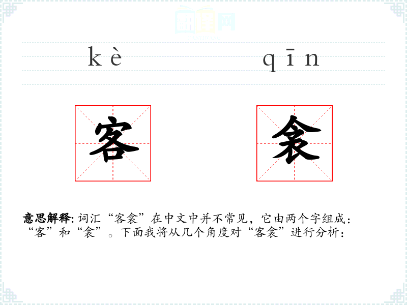 词汇“客衾”在中文中并不常见,它由两个字组成:“客”和“衾”。下面我将从几个角度对“客衾”进行分析: