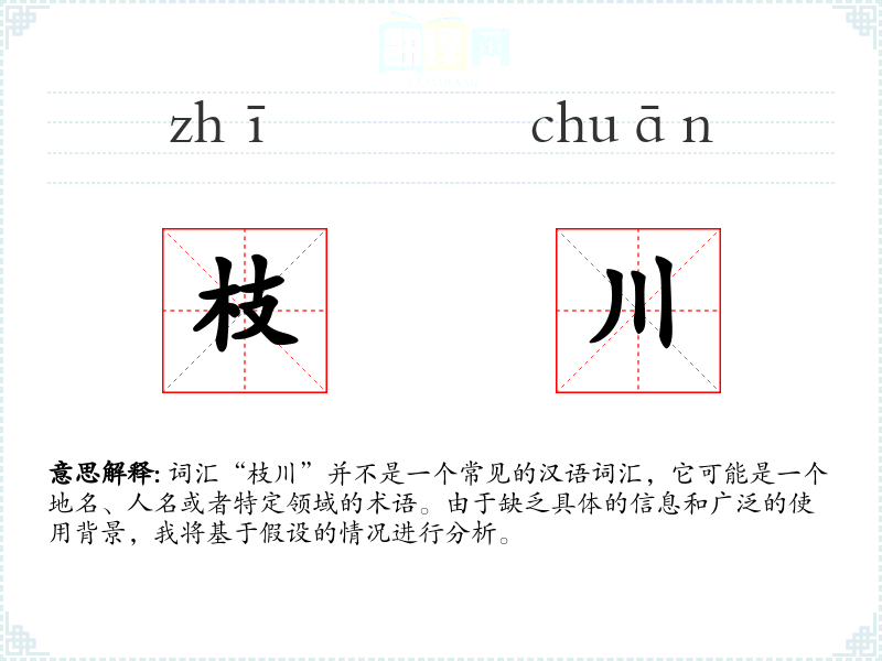 词汇“枝川”并不是一个常见的汉语词汇,它可能是一个地名、人名或者特定领域的术语。由于缺乏具体的信息和广泛的使用背景,我将基于假设的情况进行分析。