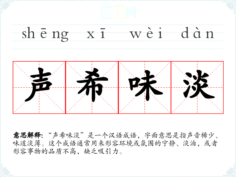 "声希味淡"的意思解释、声希味淡是什么意思由翻译网汉语词典查词提供。