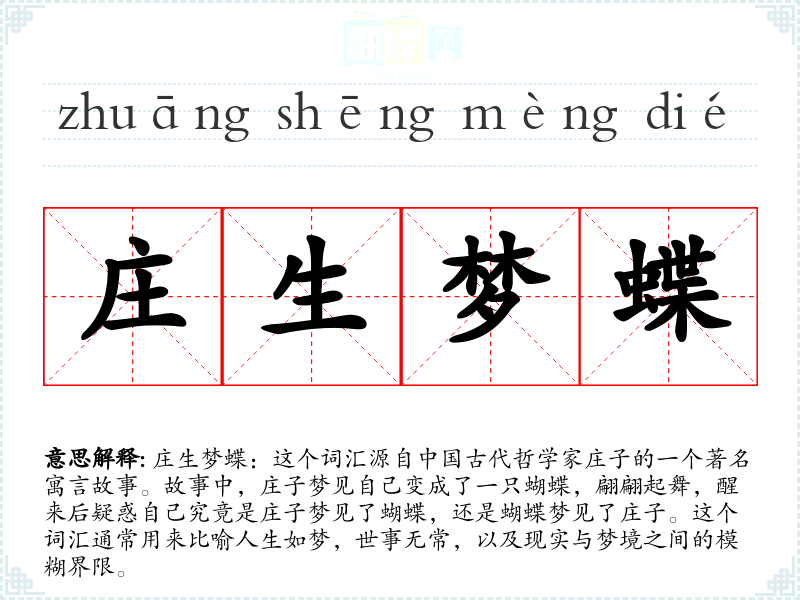 - zhuāng shēng mèng dié庄生梦蝶