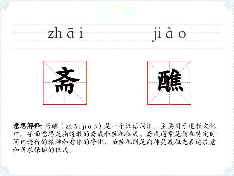同义词:祭祀、斋戒、法事 反义词:无(由于斋醮是一个特定的**活动,没有直接的反义词)