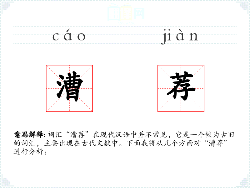 词汇“漕荐”在现代汉语中并不常见,它是一个较为古旧的词汇,主要出现在古代文献中。下面我将从几个方面对“漕荐”进行分析: