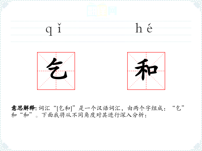 - 词源:“乞”字古已有之,源自甲骨文,意为乞求;“和”字同样历史悠久,源自金文,最初指音乐和谐,后引申为和平、和谐。