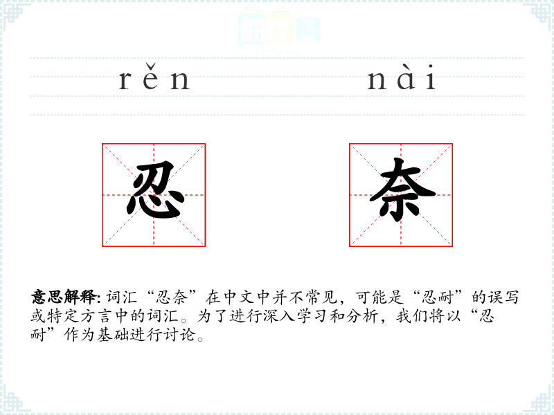 词汇“忍奈”在中文中并不常见,可能是“忍耐”的误写或特定方言中的词汇。为了进行深入学*和分析,我们将以“忍耐”作为基础进行讨论。
