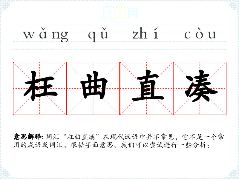 词汇“枉曲直凑”在现代汉语中并不常见,它不是一个常用的成语或词汇。根据字面意思,我们可以尝试进行一些分析: