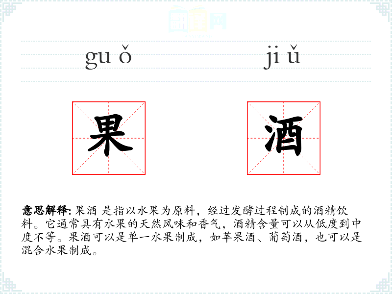 "果酒"的意思解释、果酒是什么意思由翻译网汉语词典查词提供。
