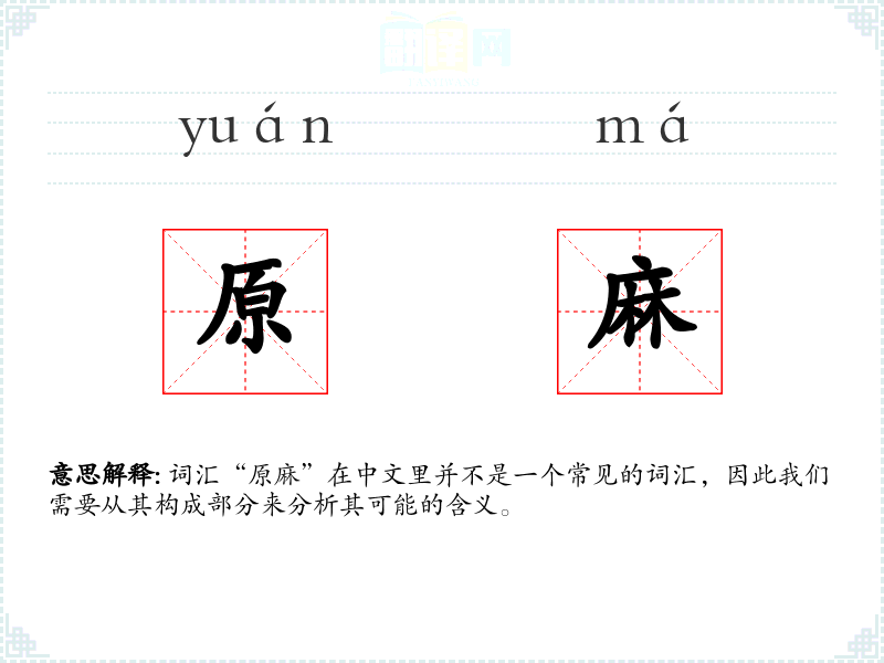 词汇“原麻”在中文里并不是一个常见的词汇,因此我们需要从其构成部分来分析其可能的含义。