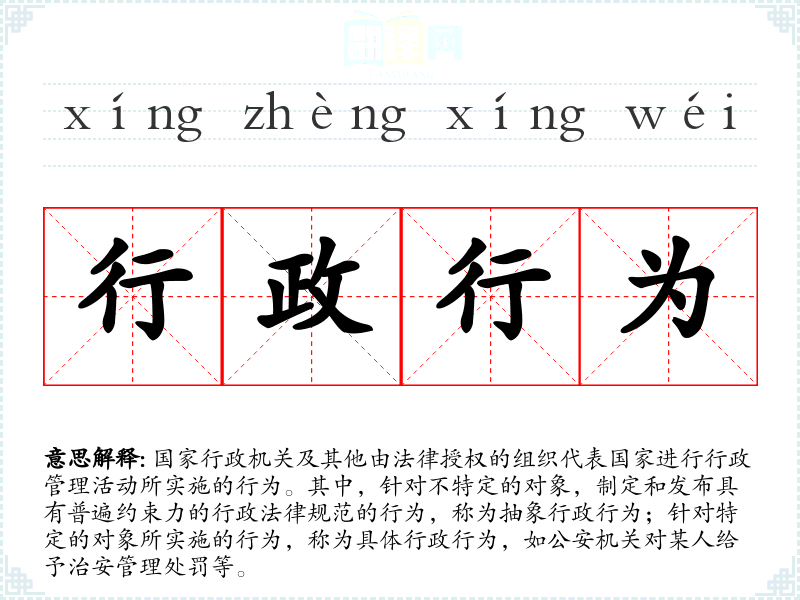 "行政行为"的意思解释、行政行为是什么意思由翻译网汉语词典查词提供。