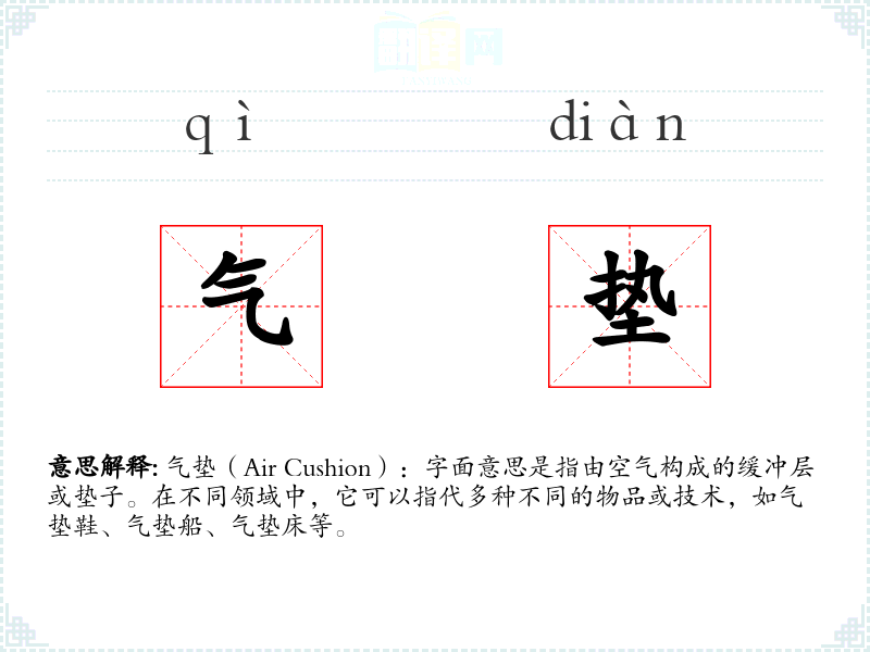 在不同语言中,气垫的对应词汇可能有所不同,但其基本概念和应用是相似的。例如,英语中的“air cushion”与中文的“气垫”含义基本一致。