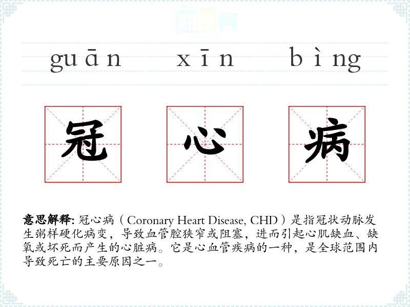 在不同语言中,冠心病的名称可能有所不同,但其病理机制和临床表现基本一致。例如,在英语中称为“Coronary Heart Disease”。