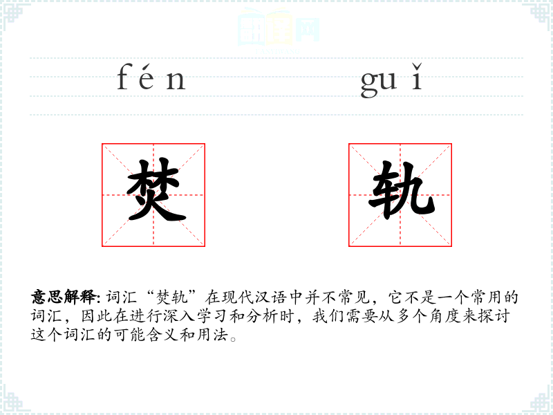 词汇“焚轨”在现代汉语中并不常见,它不是一个常用的词汇,因此在进行深入学习和分析时,我们需要从多个角度来探讨这个词汇的可能含义和用法。