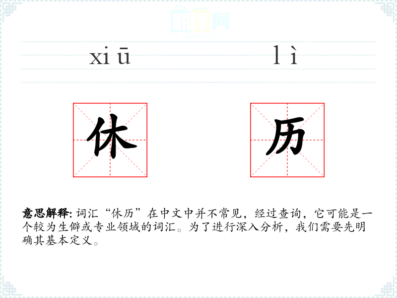 词汇“休历”在中文中并不常见,经过查询,它可能是一个较为生僻或专业领域的词汇。为了进行深入分析,我们需要先明确其基本定义。