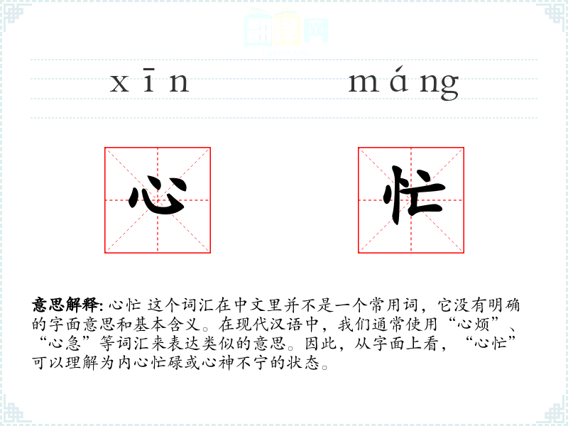 心忙 这个词汇在中文里并不是一个常用词,它没有明确的字面意思和基本含义。在现代汉语中,我们通常使用“心烦”、“心急”等词汇来表达类似的意思。因此,从字面上看,“心忙”可以理解为内心忙碌或心神不宁的状态。