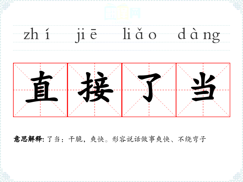 "直接了当"的意思解释、直接了当是什么意思由翻译网汉语词典查词提供。