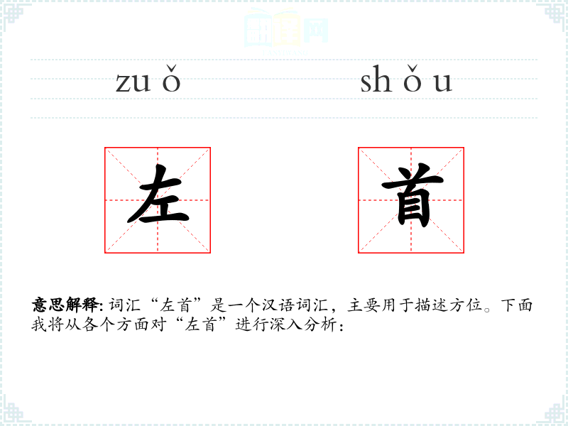 词汇“左首”是一个汉语词汇,主要用于描述方位。下面我将从各个方面对“左首”进行深入分析: