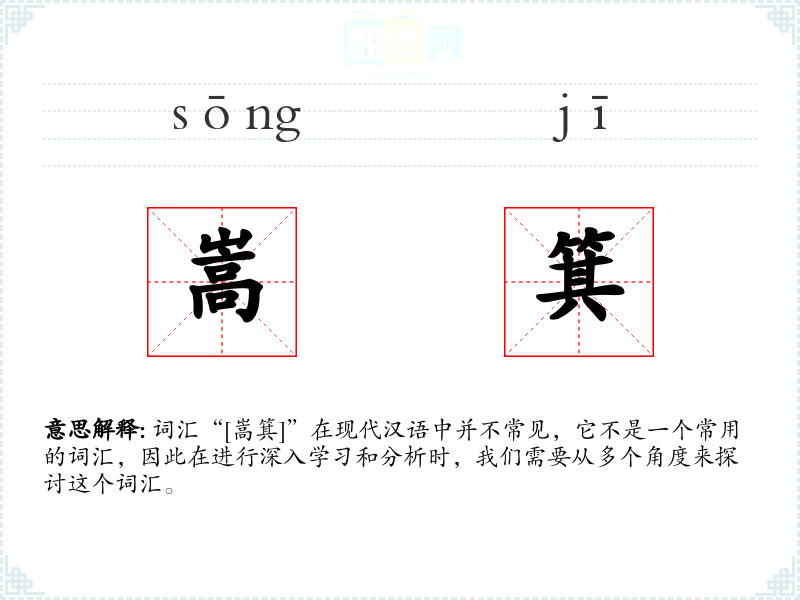 词汇“[嵩箕]”在现代汉语中并不常见,它不是一个常用的词汇,因此在进行深入学*和分析时,我们需要从多个角度来探讨这个词汇。