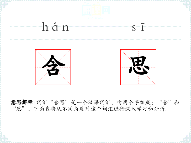 词汇“含思”是一个汉语词汇,由两个字组成:“含”和“思”。下面我将从不同角度对这个词汇进行深入学*和分析。