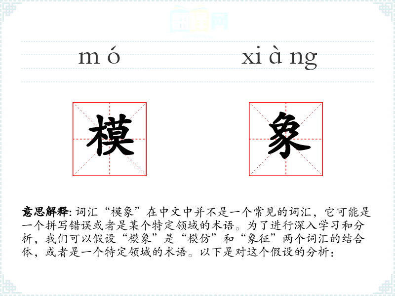 - “模象”作为一个假设的词汇,结合了模仿和象征的概念,可能在特定的语境和领域中有其独特的应用。