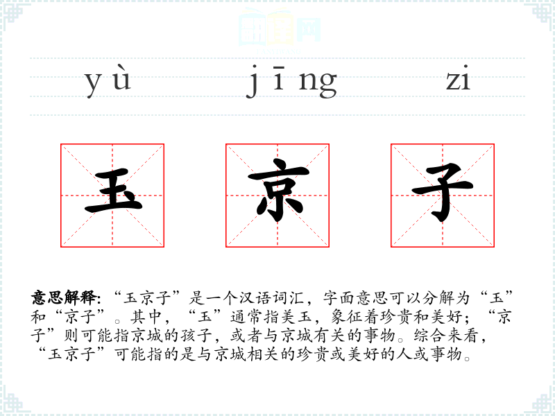 “玉京子”是一个汉语词汇,字面意思可以分解为“玉”和“京子”。其中,“玉”通常指美玉,象征着珍贵和美好;“京子”则可能指京城的孩子,或者与京城有关的事物。综合来看,“玉京子”可能指的是与京城相关的珍贵或美好的人或事物。