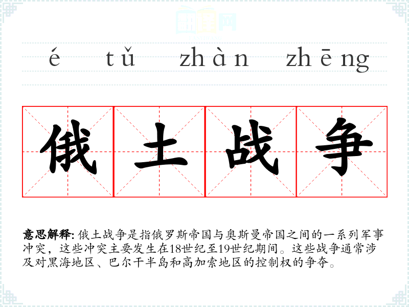 - 同义词:俄奥战争(指俄罗斯与奥斯曼帝国的战争)