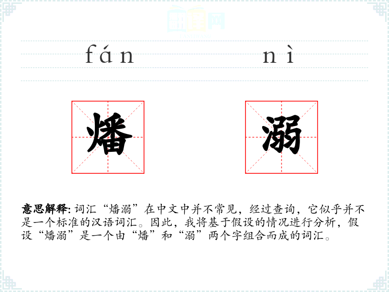 词汇“燔溺”在中文中并不常见,经过查询,它似乎并不是一个标准的汉语词汇。因此,我将基于假设的情况进行分析,假设“燔溺”是一个由“燔”和“溺”两个字组合而成的词汇。