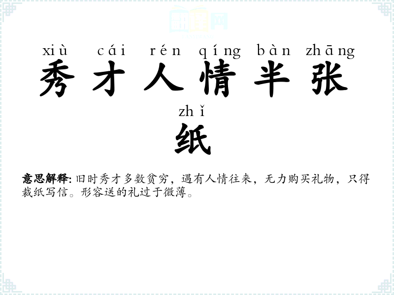 秀才人情半张纸是什么意思