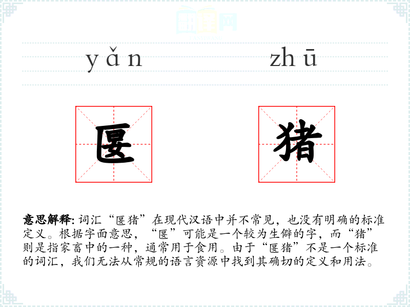 由于“匽猪”不是一个标准词汇,我们无法对其进行深入的理解和总结。在语言学习和表达中,遇到类似的不明确或生僻词汇时,建议查阅更多的语言资源或专业文献,以获得更准确的信息。