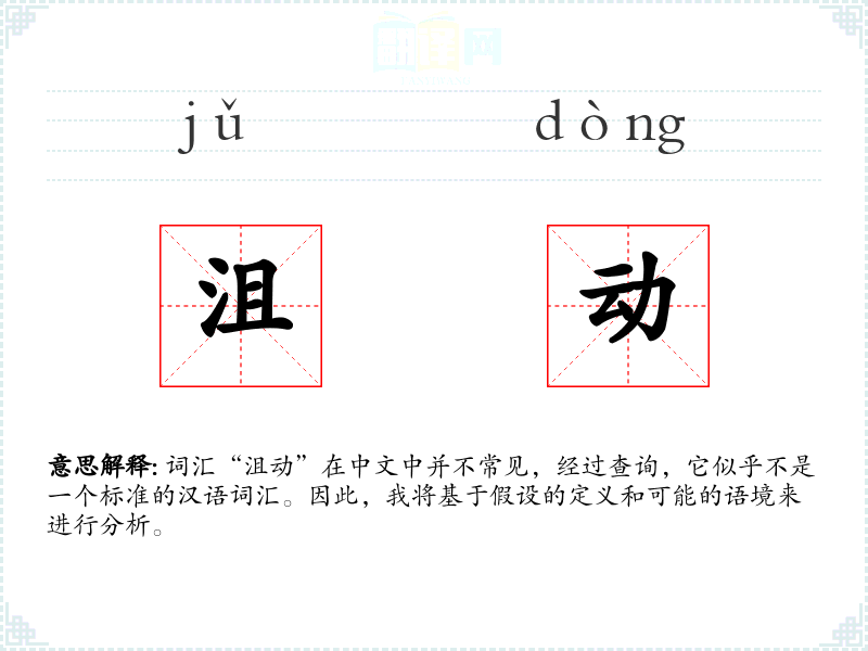 词汇“沮动”在中文中并不常见,经过查询,它似乎不是一个标准的汉语词汇。因此,我将基于假设的定义和可能的语境来进行分析。