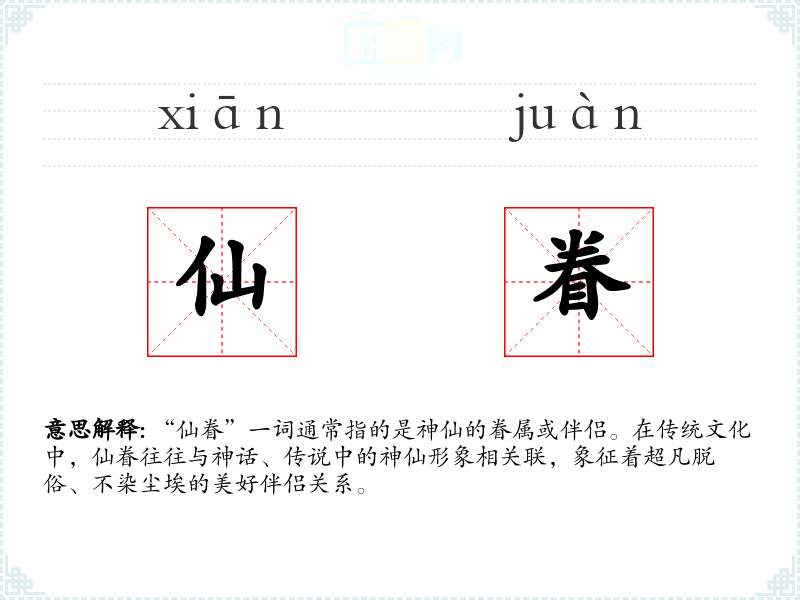 - 反义词:凡侣、俗伴(这些词汇并不常见,因为仙眷本身就与凡俗相对立)