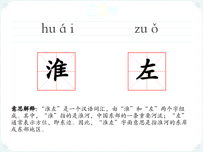 - 反义词:淮右(理论上指淮河以西的地区,但实际使用较少)