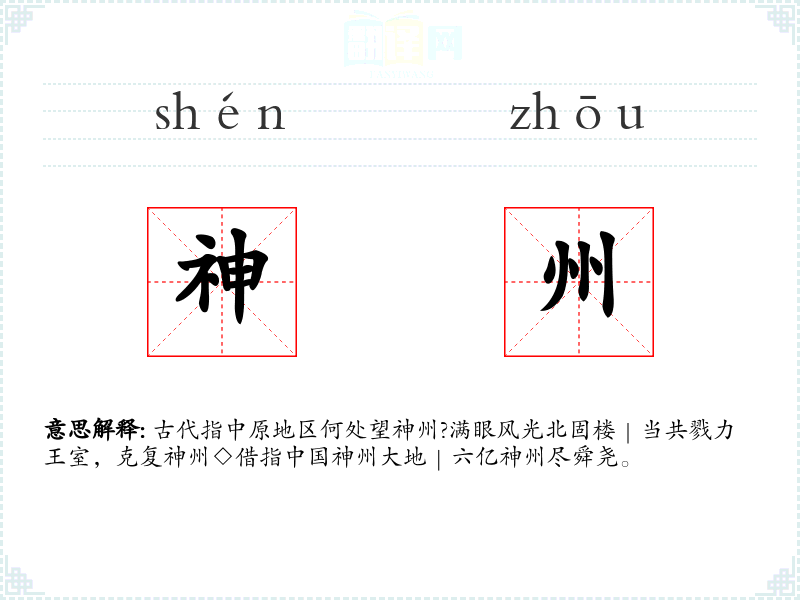 古代指中原地区何处望神州?满眼风光北固楼|当共戮力王室,克复神州◇借指中国神州大地|六亿神州尽舜尧。
