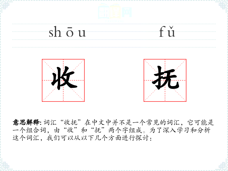 词汇“收抚”在中文中并不是一个常见的词汇,它可能是一个组合词,由“收”和“抚”两个字组成。为了深入学习和分析这个词汇,我们可以从以下几个方面进行探讨: