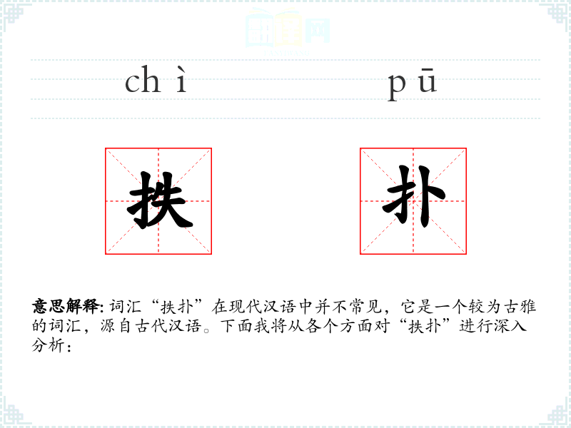 词汇“抶扑”在现代汉语中并不常见,它是一个较为古雅的词汇,源自古代汉语。下面我将从各个方面对“抶扑”进行深入分析: