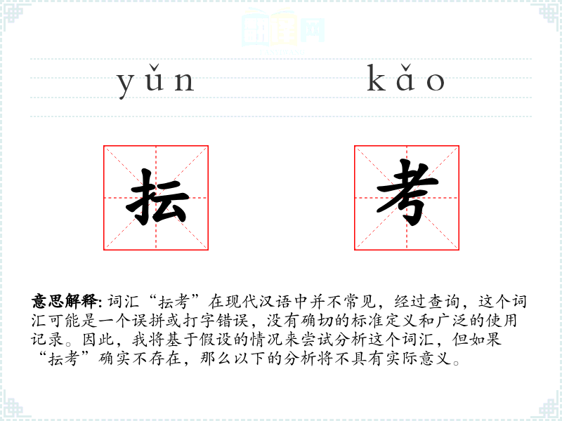 词汇“抎考”在现代汉语中并不常见,经过查询,这个词汇可能是一个误拼或打字错误,没有确切的标准定义和广泛的使用记录。因此,我将基于假设的情况来尝试分析这个词汇,但如果“抎考”确实不存在,那么以下的分析将不具有实际意义。