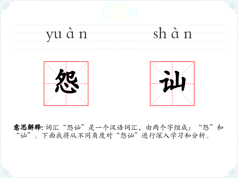 词汇“怨讪”是一个汉语词汇,由两个字组成:“怨”和“讪”。下面我将从不同角度对“怨讪”进行深入学*和分析。