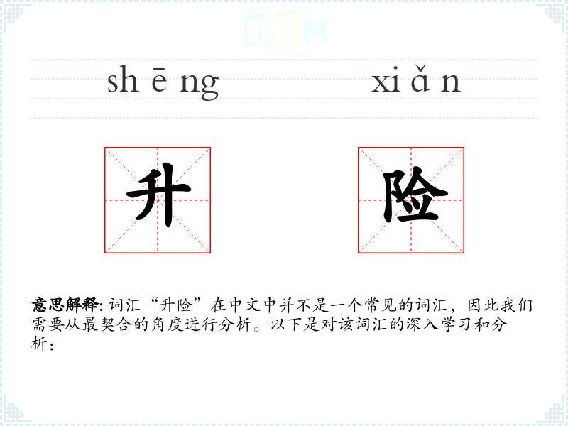 词汇“升险”在中文中并不是一个常见的词汇,因此我们需要从最契合的角度进行分析。以下是对该词汇的深入学习和分析: