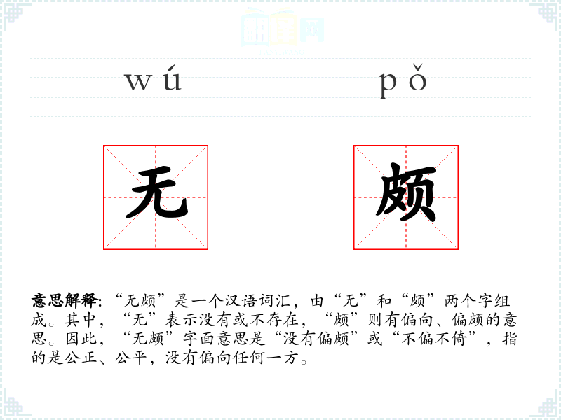 在视觉上,“无颇”可能让人联想到平衡的天平或公正的法官形象。在听觉上,可能会联想到庄重、严肃的法庭辩论声。