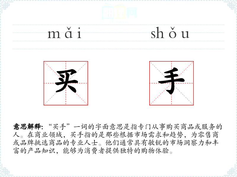 在不同语言中,“买手”可能有不同的表达,但其核心职责和作用是相似的。例如,在英语中,“buyer”或“purchasing agent”可以对应“买手”。