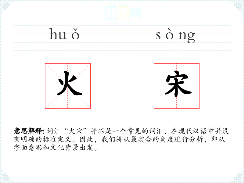 词汇“火宋”并不是一个常见的词汇,在现代汉语中并没有明确的标准定义。因此,我们将从最契合的角度进行分析,即从字面意思和文化背景出发。