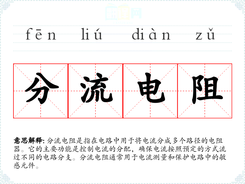 同义词:分流器、分流元件 反义词:集流电阻(假设存在,用于集中电流而不是分流)