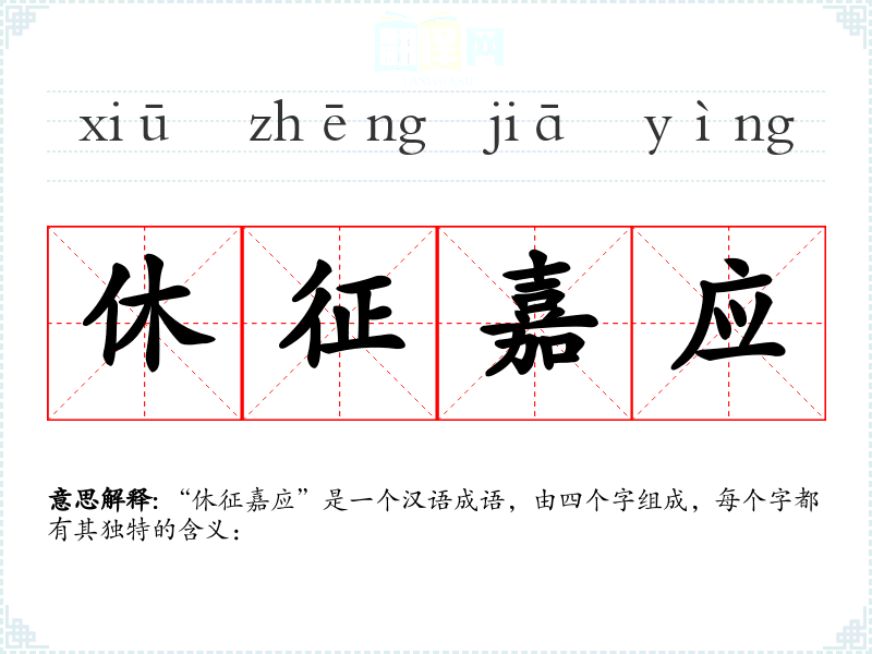 “休征嘉应”是一个汉语成语,由四个字组成,每个字都有其独特的含义: