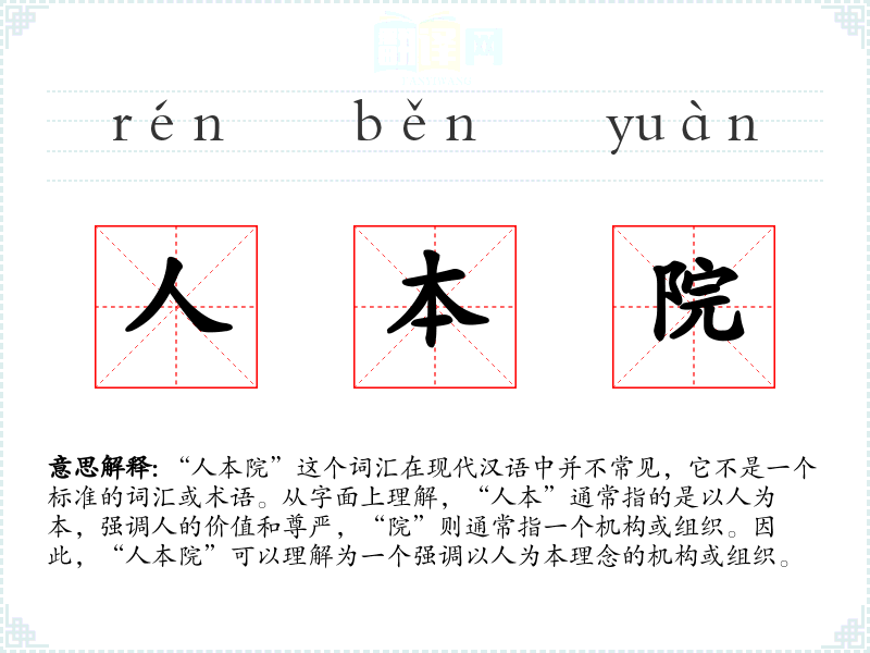 由于“人本院”不是一个标准词汇,它的词源和演变没有具体的历史记录。它可能是由现代人根据“以人为本”的理念创造出来的一个新词。