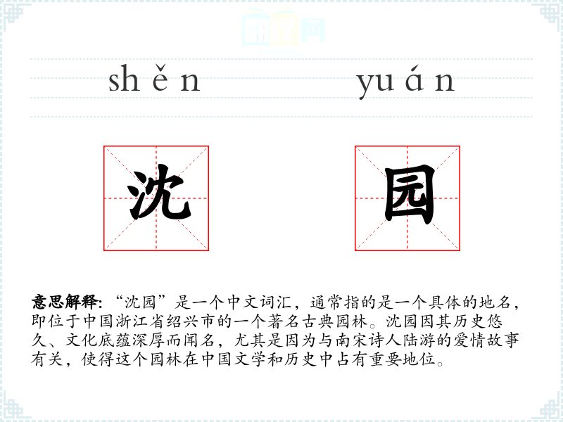 "沈园"的意思解释、沈园是什么意思由翻译网汉语词典查词提供。