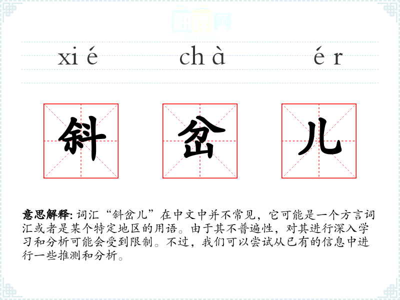 由于“斜岔儿”不是一个标准词汇,其词源和演变可能难以追踪。它可能是某个地区方言的产物,随着时间的推移,可能会有所变化。