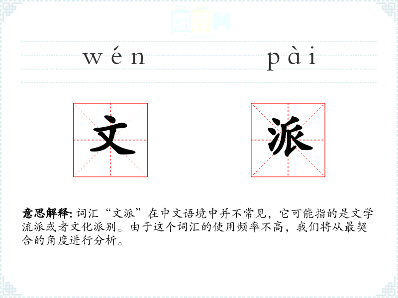 词汇“文派”在中文语境中并不常见,它可能指的是文学流派或者文化派别。由于这个词汇的使用频率不高,我们将从最契合的角度进行分析。
