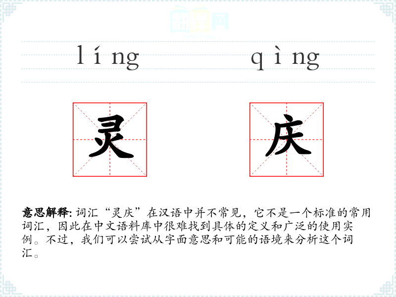 由于“灵庆”不是一个常用词汇,它在不同语言或文化中的对应词汇及其使用情况不详。