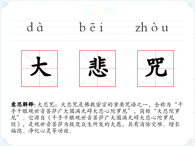 反义词:无(大悲咒作为一种**咒语,没有直接的反义词)