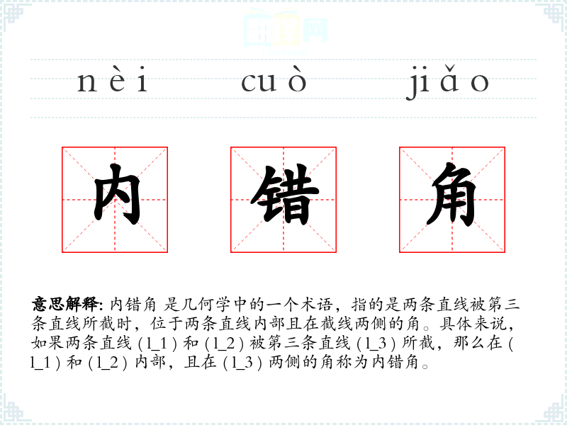 "内错角"的意思解释、内错角是什么意思由翻译网汉语词典查词提供。