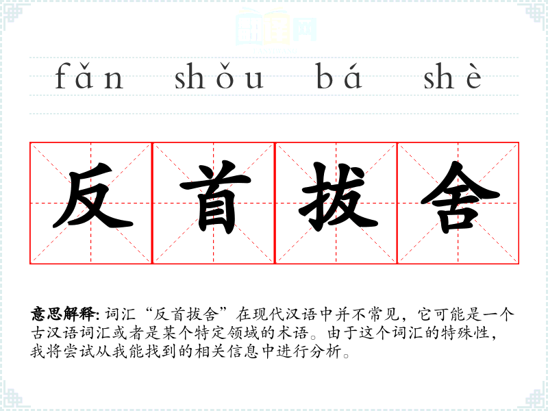词汇“反首拔舍”在现代汉语中并不常见,它可能是一个古汉语词汇或者是某个特定领域的术语。由于这个词汇的特殊性,我将尝试从我能找到的相关信息中进行分析。